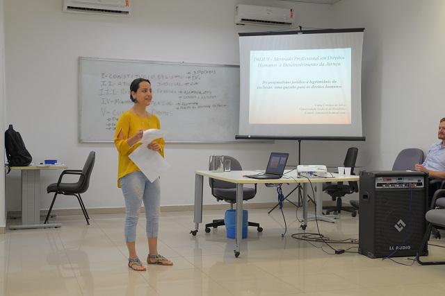 À tarde, além da continuação dos minicursos iniciados na quarta-feira (08), foi promovido o minicurso Como Fazer Quadrinhos em Direitos Humanos e, no auditório do TJRO, o Seminário “Direitos Humanos e Atendimento ao Imigrante” com o pesquisador da Universidade Federal de Roraima, Gustavo da Frota Simões, que tem atuado junto aos imigrantes venezuelanos que tem chegado ao Brasil.