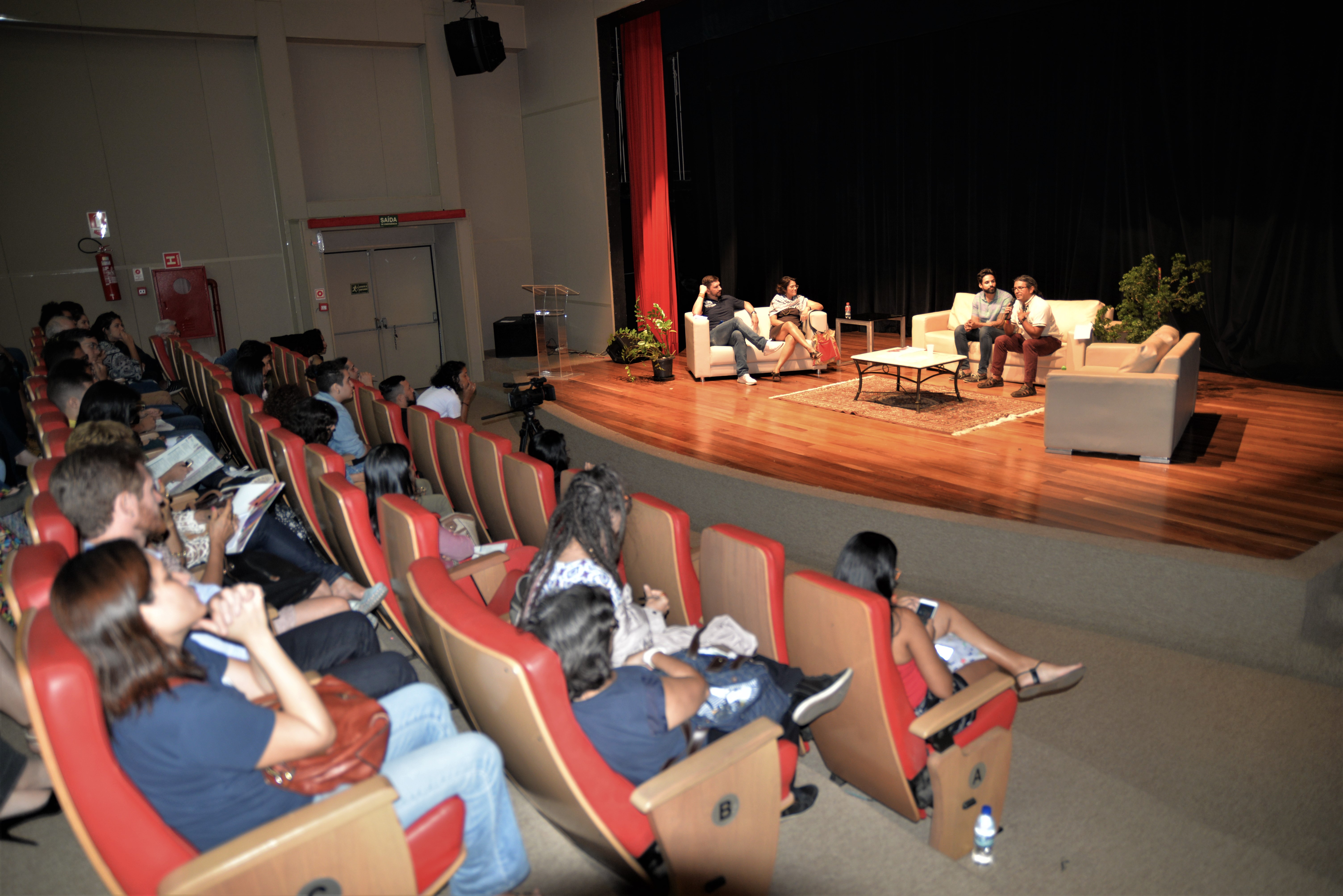 Finalizando o dia, o palco do Teatro Guaporé foi novamente espaço para o Diálogos, dessa vez com o tema “Mídia, novas tecnologias e direito”. Coordenados pelo professor Estevão Fernandes, a professora Berenice Bento e o pesquisador Emílio Escalante falaram sobre suas relações com violações de direitos fundamentais.
