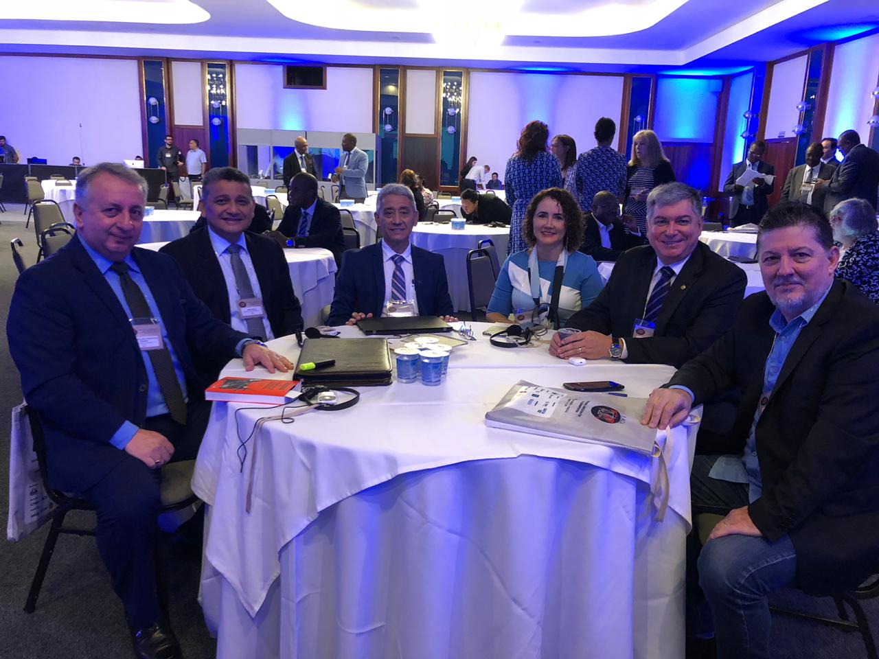 O diretor da Escola da Magistratura do Estado de Rondônia (Emeron), desembargador Marcos Alaor Diniz Grangeia, participa do evento ao lado dos desembargadores José Jorge Ribeiro da Luz, corregedor-geral do TJRO, e Miguel Mônico Neto, e dos juízes Sérgio William Teixeira, secretário-geral do TJRO, Arlen José de Souza e Valdirene Clementete. Os juízes Arlen, de Porto Velho, e Valdirene, de Pimenta Bueno, foram selecionados por meio de edital oferecido pela Escola para participação de magistrados de 1º e 2º grau em eventos fora do estado.