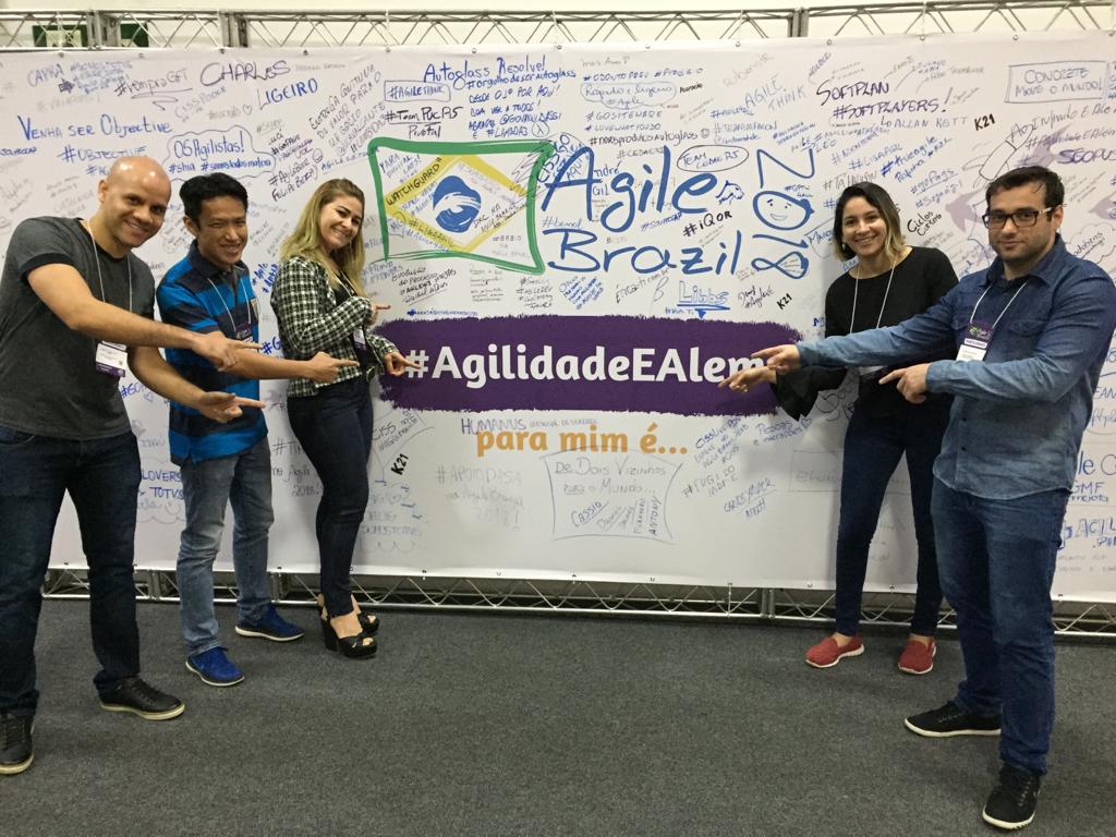 Simone Sena, diretora do Departamento de Estratégia e Governança de TIC (Degov), Ianna Paes, diretora da Divisão de Projetos de TIC (Dipro), Allan Ratts, do Gabinete da STIC, Marco Shibayama e Humberto Viana Junior, analistas do Departamento de Sistemas, representaram o PJRO no evento, criado e organizado pela comunidade brasileira de métodos ágeis com o objetivo de incentivar e disseminar a cultura ágil, que vem sendo adotada por empresas dos mais diferentes tamanhos e segmentos, agências e órgãos de governo. O lema da edição deste ano foi #AgilidadeEAlem.