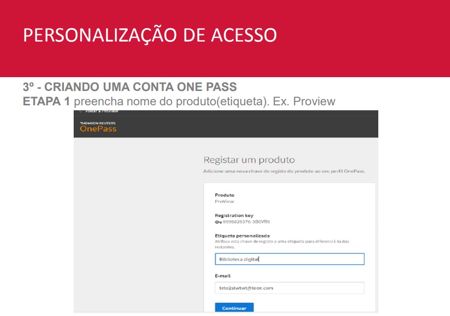 O primeiro acesso deve ser feito pelo endereço, somente dentro da rede interna do TJRO e utilizando o e-mail individual corporativo para cadastro (@tjro.jus.br). A seguir, o novo usuário deve personalizar sua conta OnePass (basta clicar no avatar no canto superior direito), a partir da qual poderá acessar de qualquer lugar conectado à internet. Após, o acesso será sempre pelo link https://proview.thomsonreuters.com (salve como favorito), inserindo usuário e senha para explorar todos os recursos de destaques, notas e compartilhamentos de acordo com a disponibilidade de cada obra.