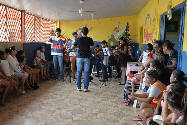 Para receber a primeira leva de donativos e presentes, a creche organizou um evento com a participação das crianças e seus pais ou responsáveis, que acompanharam uma apresentação musical da orquestra comunitária do projeto social Sonata, de musicalização de jovens, regidos pelo professor Edvan Ramos. Uma das mães, a vigilante Antônia Cristina Santos, que no momento está desempregada e tem duas filhas acolhidas no Aconchego, gostou bastante do recital. “Muito bom, incentiva as crianças também”, afirma.