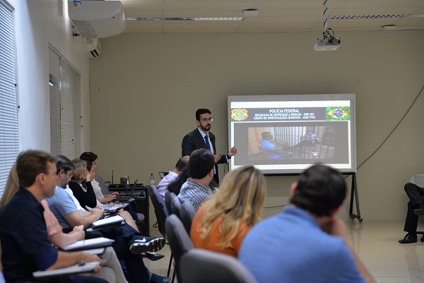 Leonardo apresentou o processo de investigação, coleta de provas e monitoramento de alvos. O delegado ressaltou ainda a importância da relação entre a polícia e a justiça para que toda a investigação ocorra dentro da legalidade e mantendo-se as garantias penais e processuais estabelecidas por lei.