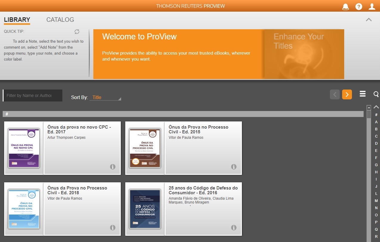Composto por mais de 800 publicações jurídicas, o serviço de plataforma digital ProView, contratado pela Escola da Magistratura do Estado de Rondônia (Emeron) junto à multinacional Thomson Reuters, completou dois meses de sua disponibilização. Com o objetivo de ampliar o atendimento a magistrados e servidores do judiciário rondoniense, a plataforma aumenta o acervo da biblioteca da Emeron, que tem cerca de 8 mil itens físicos. Apenas nas primeiras semanas de uso, foram registrados mais de 3 mil acessos ao serviço.