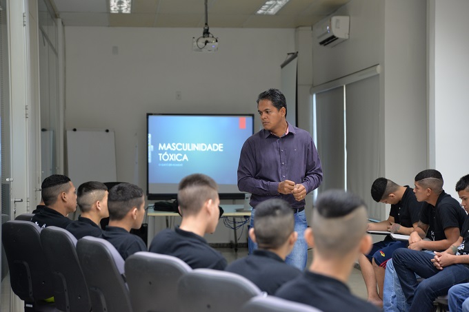 Na manhã de sexta-feira, 15, os adolescentes atendidos pelo Projeto “Se a vida ensina, eu sou aprendiz” participaram da palestra “Masculinidade Tóxica”, ministrada pelo psicólogo Cristiano Corrêa de Paula, do Núcleo de Perícia Psicossocial dos Juizados de Violência Doméstica e Familiar Contra a Mulher de Porto Velho. Ao abordar este e outros temas multidisciplinares, o projeto, realizado pela Escola da Magistratura do Estado de Rondônia (Emeron), promove um espaço de reflexão e aprendizado de novas posturas para a convivência sadia em sociedade.