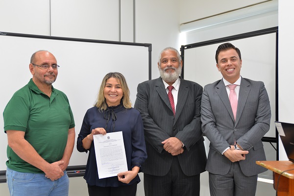 Hoje pela manhã, foi a vez da servidora Jucilene Mattiuzi defender seu trabalho, intitulado “O uso do nome social no âmbito do Tribunal de Justiça de Rondônia”, sob orientação do professor doutor Delson Xavier. Jucilene apresentou os resultados de sua pesquisa, em que verificou que uma parcela da população transgênera não se sente confortável em utilizar os serviços do judiciário em razão do constrangimento causado pela não utilização, por parte da instituição, do nome social. Como produtos da dissertação, Jucilene apresentou uma minuta de resolução para a normatização do uso social no judiciário rondoniense e uma cartilha para o esclarecimento de serventuários e usuários a respeito desse direito.