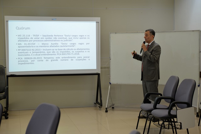 Após todo o cenário de construção do direito administrativo disciplinar, com as previsões normativas disciplinares e sanções, temas tratados por Marcos, o elemento abordado por Domingos é o processo administrativo disciplinar em si, encerrando o sistema administrativo disciplinar dos magistrados. “A turma é muito boa, tem muito interesse em querer conhecer o tema, pelas perguntas e abordagens que estão sendo feitas é um pessoal altamente qualificado e espero que contribua ainda mais para eles, estou muito feliz de ter vindo para cá e muito honrado com o convite”, conclui Marcos.