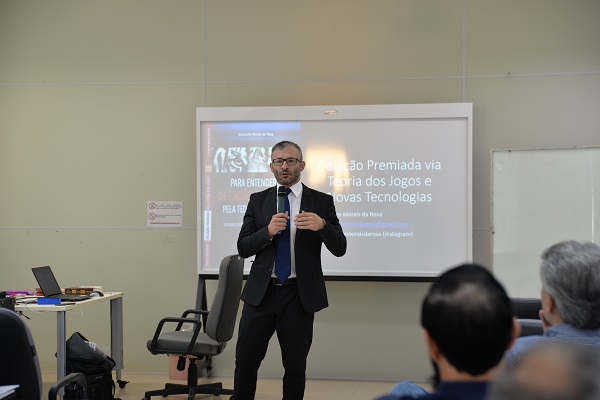 O módulo foi ministrado pelo Juiz do Tribunal de Justiça de Santa Catarina Alexandre Morais da Rosa, que apresentou uma visão crítica da delação a partir da perspectiva da teoria dos jogos, ramo da matemática aplicada que estuda situações estratégicas onde jogadores escolhem diferentes ações na tentativa de melhorar seu retorno, e que já vem sendo aplicada ao processo penal.